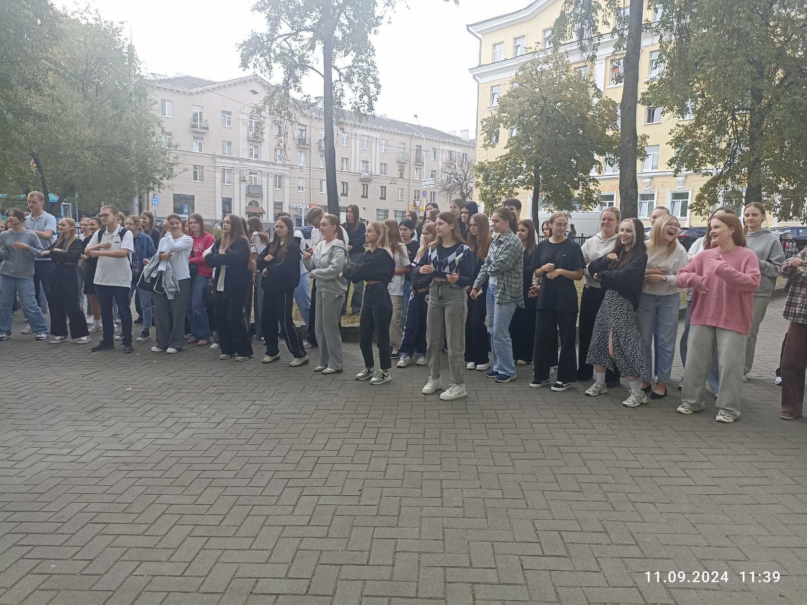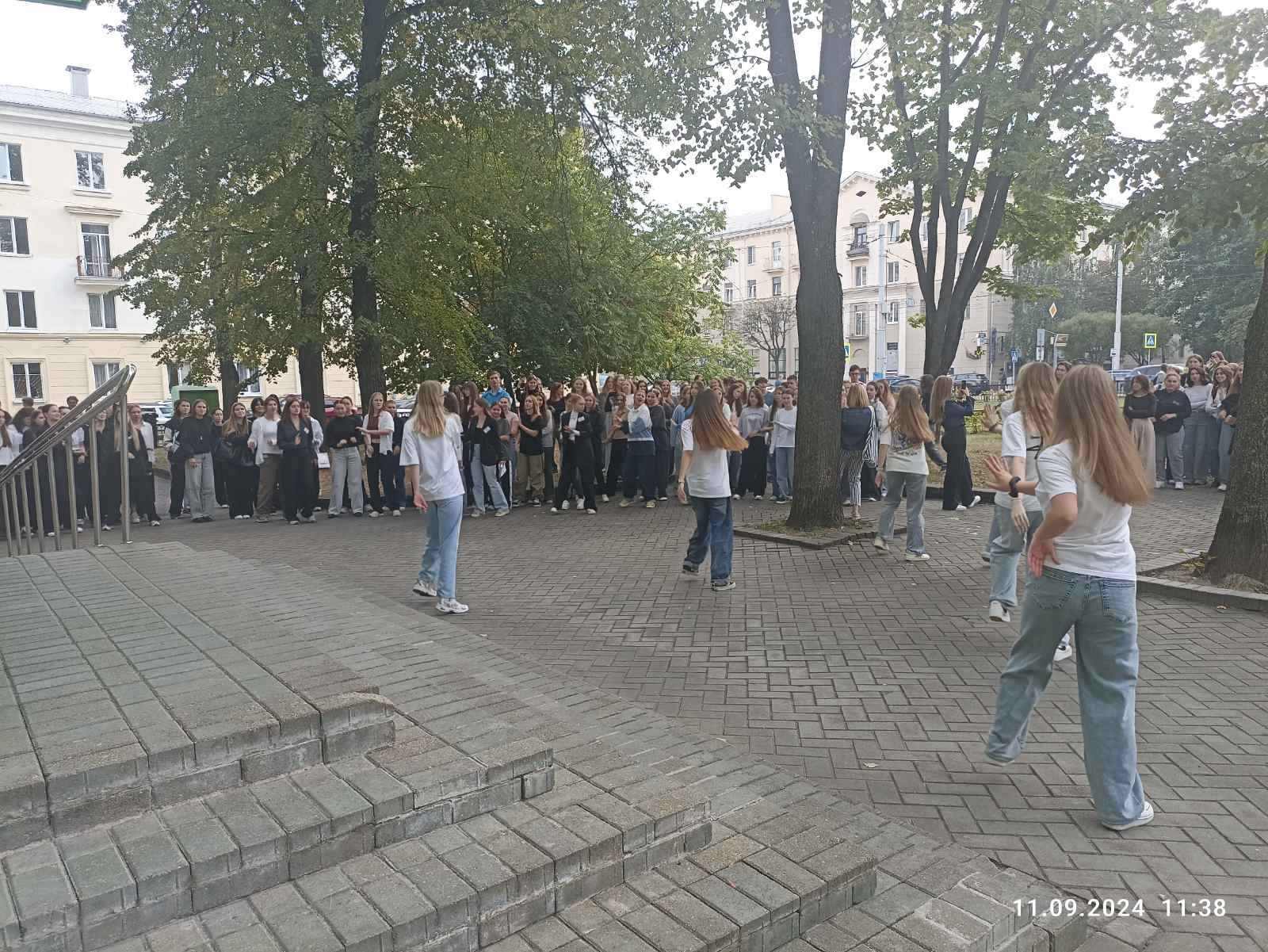 11 сентября 2024 года для учащихся первого года обучения прошел традиционно флешмоб «Посвящение в первокурсники», в ходе которого учащиеся зарядились позитивным настроением, раскрепостились и сняли эмоциональное напряжение, повторяя ритмичные движения. В этом году ребята как никогда были активными участниками мероприятия и старались повторять движения.