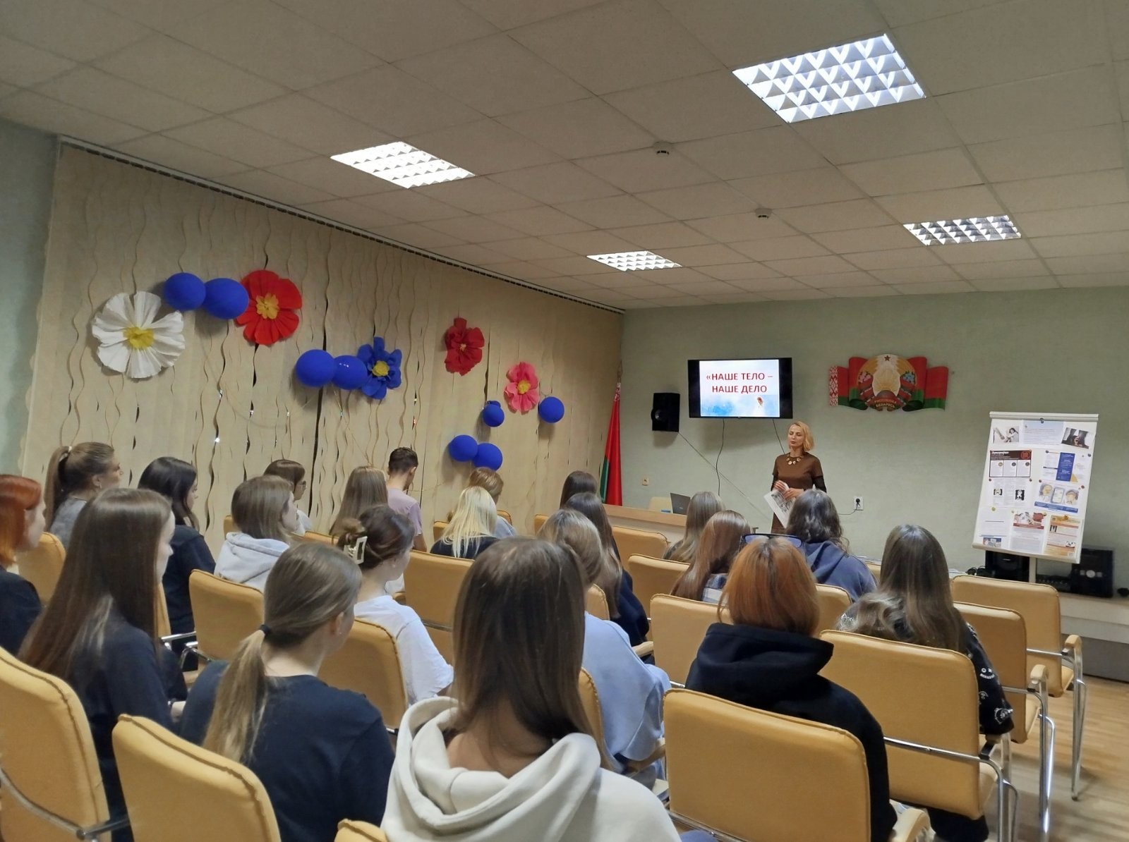31 октября 2024 года в рамках проведения комплекса мероприятий, направленных на противодействие преступлениям против половой неприкосновенности и половой свободы несовершеннолетних, обороту детской порнографии, в общежитии колледжа с учащимися 2 курса проведено занятие «Наше тело – наше дело».