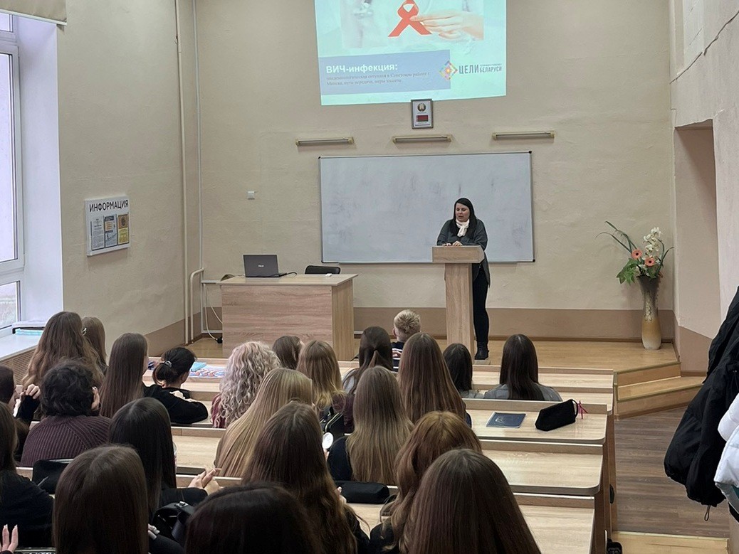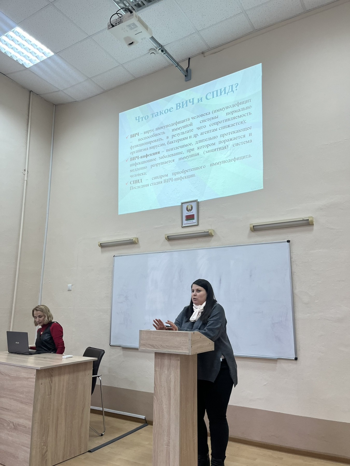 18 ноября 2024 года в рамках информационной кампании по профилактике ВИЧ-инфекции «Риск заражения».  В рамках мероприятия перед учащимися 2 курса выступила врач-эпидемиолог центра гигиены и эпидемиологии Советского района г.Минска Ложечник Юлия Вячеславовна. Юлия Вячеславовна рассказала учащимся об актуальной статистике по заражению ВИЧ-инфекцией, наиболее распространенных в стране и городе Минске путях заражения, профилактике инфицирования и способах раннего выявления заболевания.