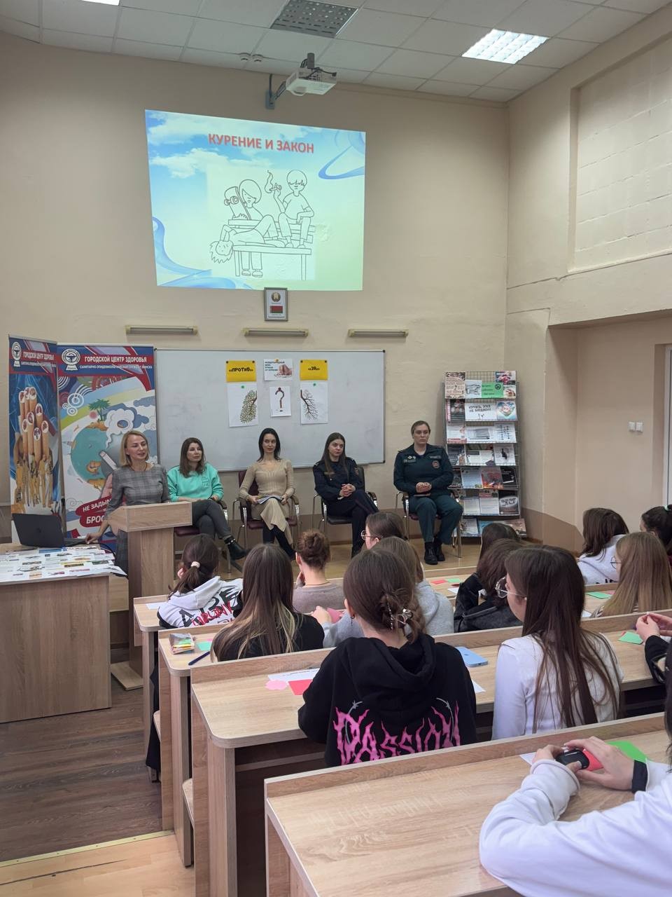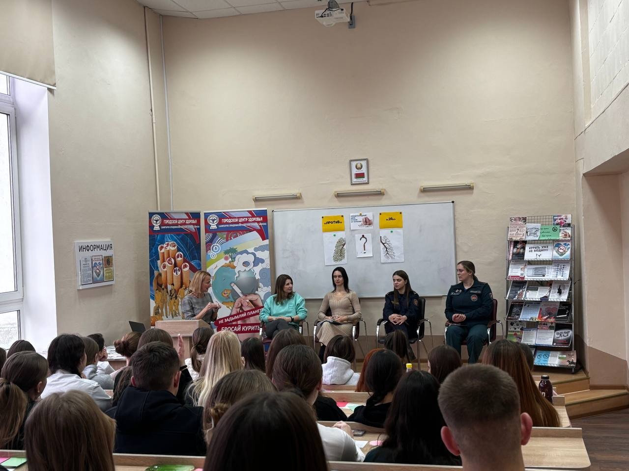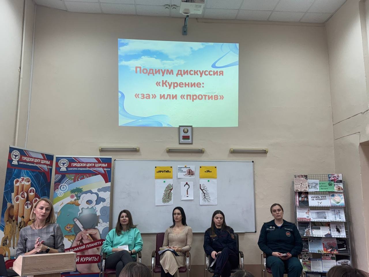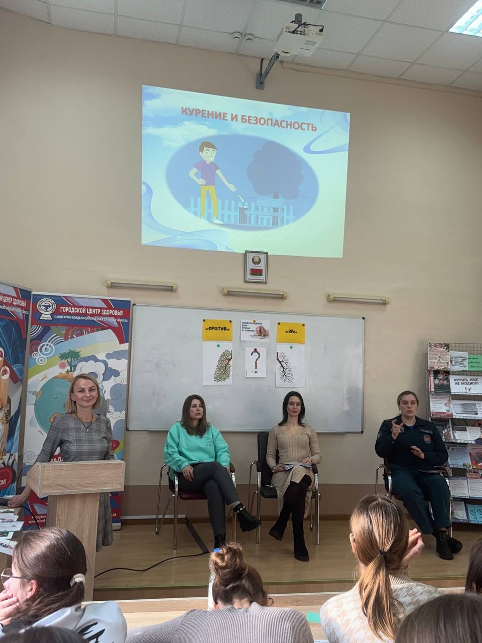 В рамках дискуссии против курения выступили эксперты: инспектор ИДН РУВД Советского района г.Минска Москаленко Анастасия Юрьевна, инспектор РОЧС Лукашевич Ангелина Сергеевна, врач по медицинской профилактике городского Центра здоровья Шешко Анна Юрьевна. С ребятами обсуждены темы отношение к курению в общественных местах, актуализированы вопросы последствий курения для здоровья человека, психологических причин данного пристрастия, а также вопросов безопасности.