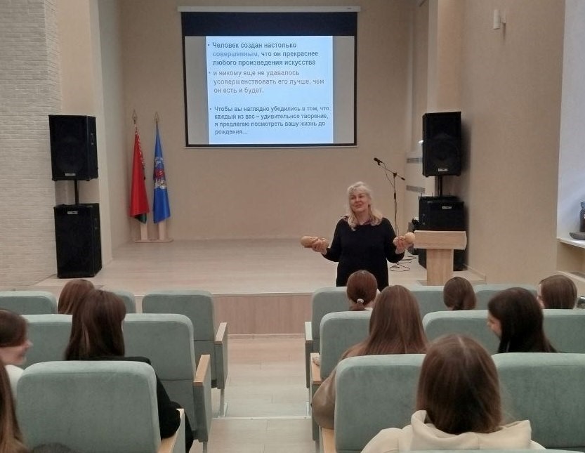 16 мая 2025 года в рамках реализации проекта «Мой стиль жизни сегодня, мое здоровье и успех завтра!» с учащимися 1 курса организована встреча с психологом учреждения здравоохранения «34-я центральная района клиническая поликлиника Советского района г.Минска» Фирисюк Татьяной Николаевной по теме «Семейные ценности».