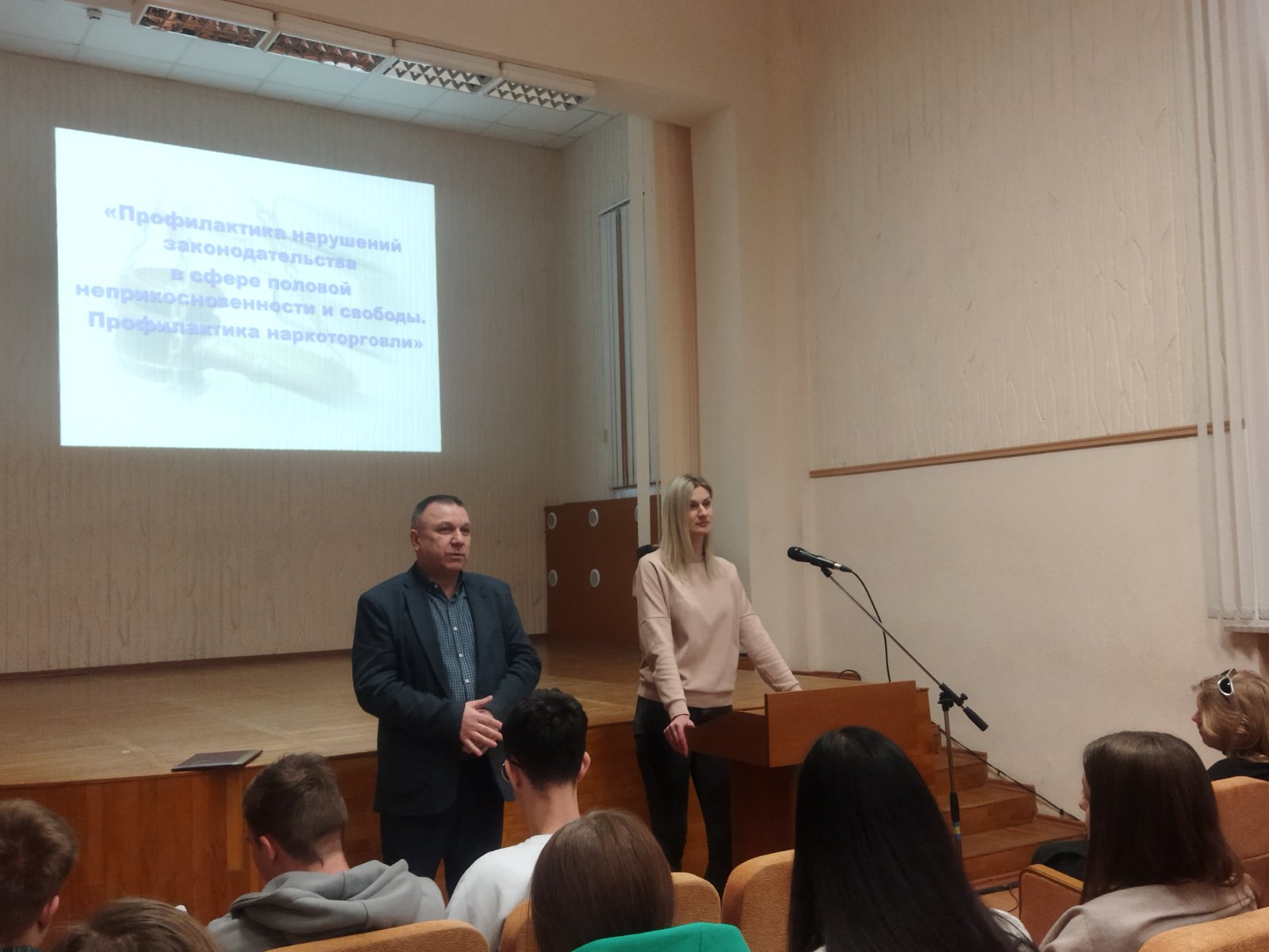 28 ноября 2023 года состоялась встреча учащихся 2 курса с следователем отдела по наркоконтролю и противодействию торговле людьми Советского РУВД г. Минска Полуэктовой А.А. по теме: «Преступления в сфере половой неприкосновенности и половой свободы.
