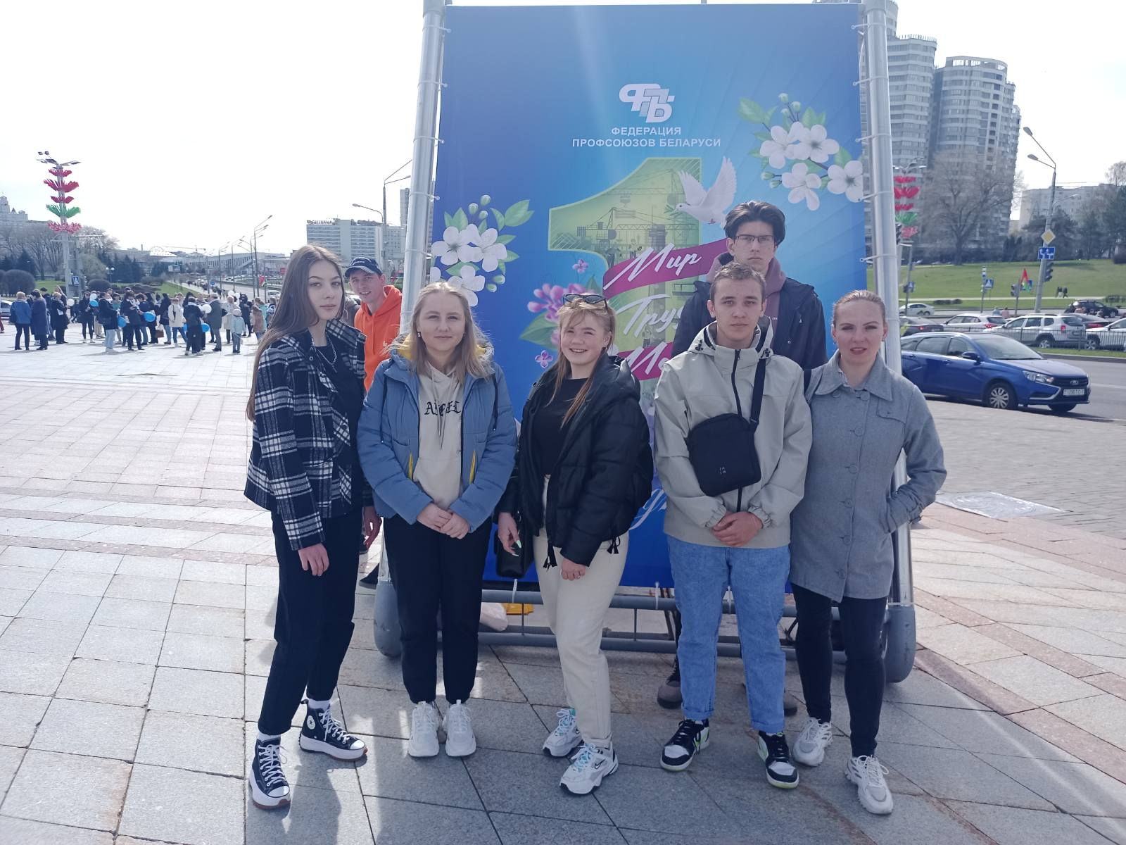 1 мая 2022 года учащиеся филиала, председатель профсоюзного комитета преподавателей Швабович Елена Витальевна и  начальник отдела воспитательной работы с молодежью Сидоревич Ольга Павловна приняли участие в торжественном мероприятии, посвященному празднику труда, организованному Белорусской федерацией профсоюзов.