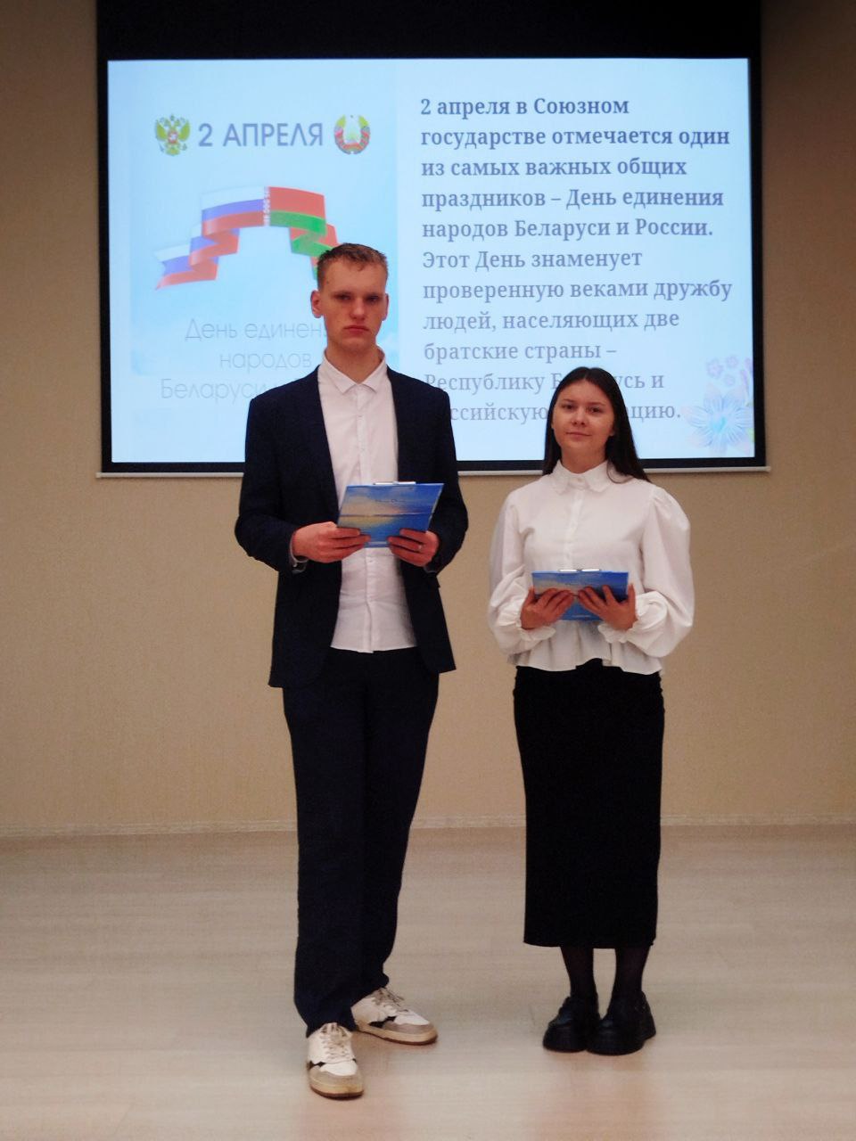 Учащиеся познакомились с историей праздника, узнали о сотрудничестве двух стран на современном этапе, ответили на вопросы музыкальной викторины о городах Российской Федерации, а также на вопросы викторины о традициях Республики Беларусь и Российской Федерации.