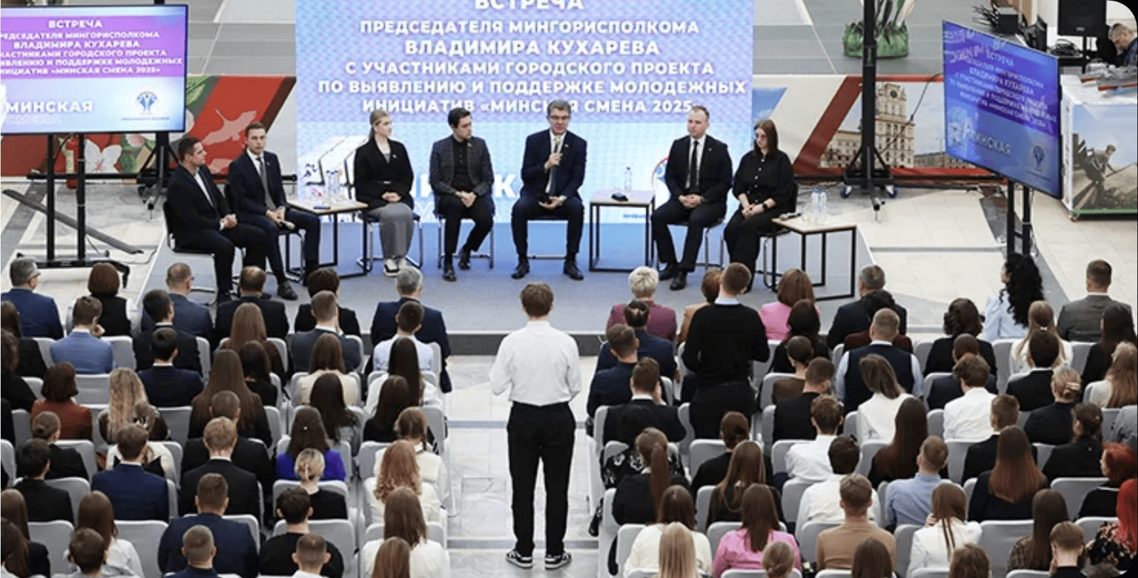 Председатель Мингорисполкома В. Кухарев 26 апреля 2025 года встретился с участниками городского проекта по выявлению и поддержке молодежных инициатив «Минская смена - 2025». Учащаяся колледжа Кноблох Инна вышла в городской этап со своим проектом и приняла участие в этой встрече. Ребята могли задать В. Кухареву вопросы по тематике своих разработок и с большим энтузиазмом воспользовались этой возможностью.