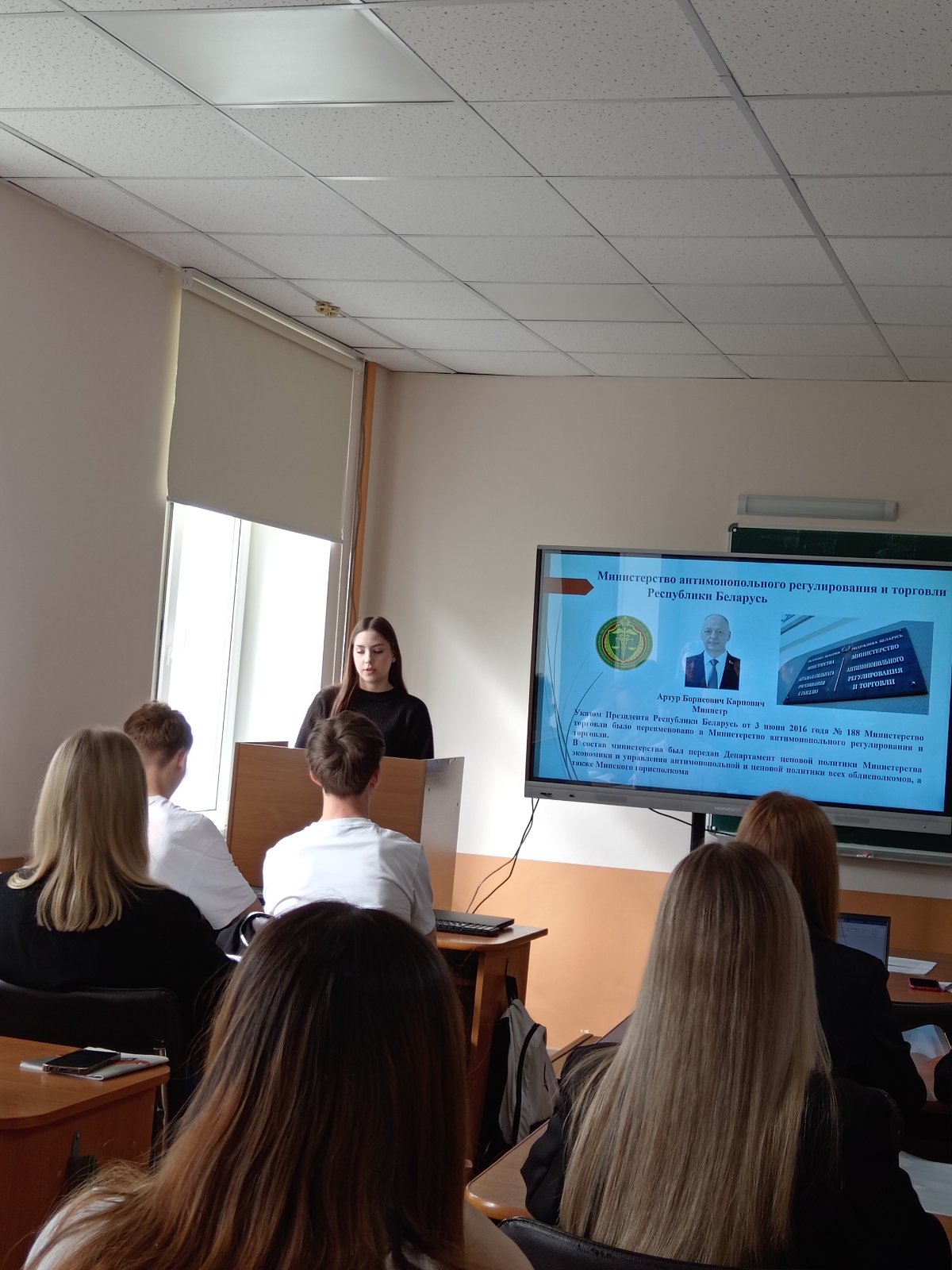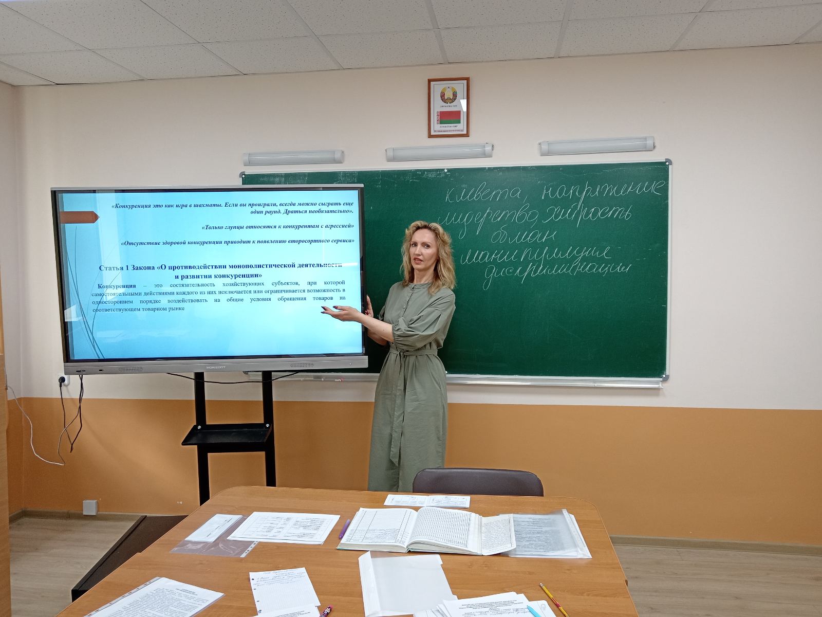 25 апреля 2025 года преподавателем Швабович Е.В. проведено открытое учебное занятие по учебному предмету «Хозяйственное право» по теме «Законодательство о противодействии монополистической деятельности и развитии конкуренции».
