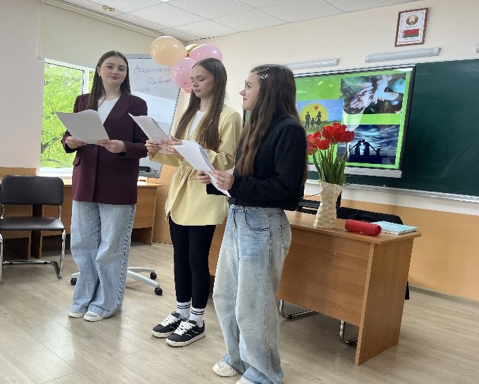 5 мая 2025 года в учебной группе 2301 специальности «Бухгалтерский учет, анализ и контроль» состоялся открытый кураторский час на тему «День семьи, любви и верности». Модераторами мероприятия были Бакей Диана, Шульган Дарья, Фурс Юлия, а также куратор группы О.И.Кондрашова.