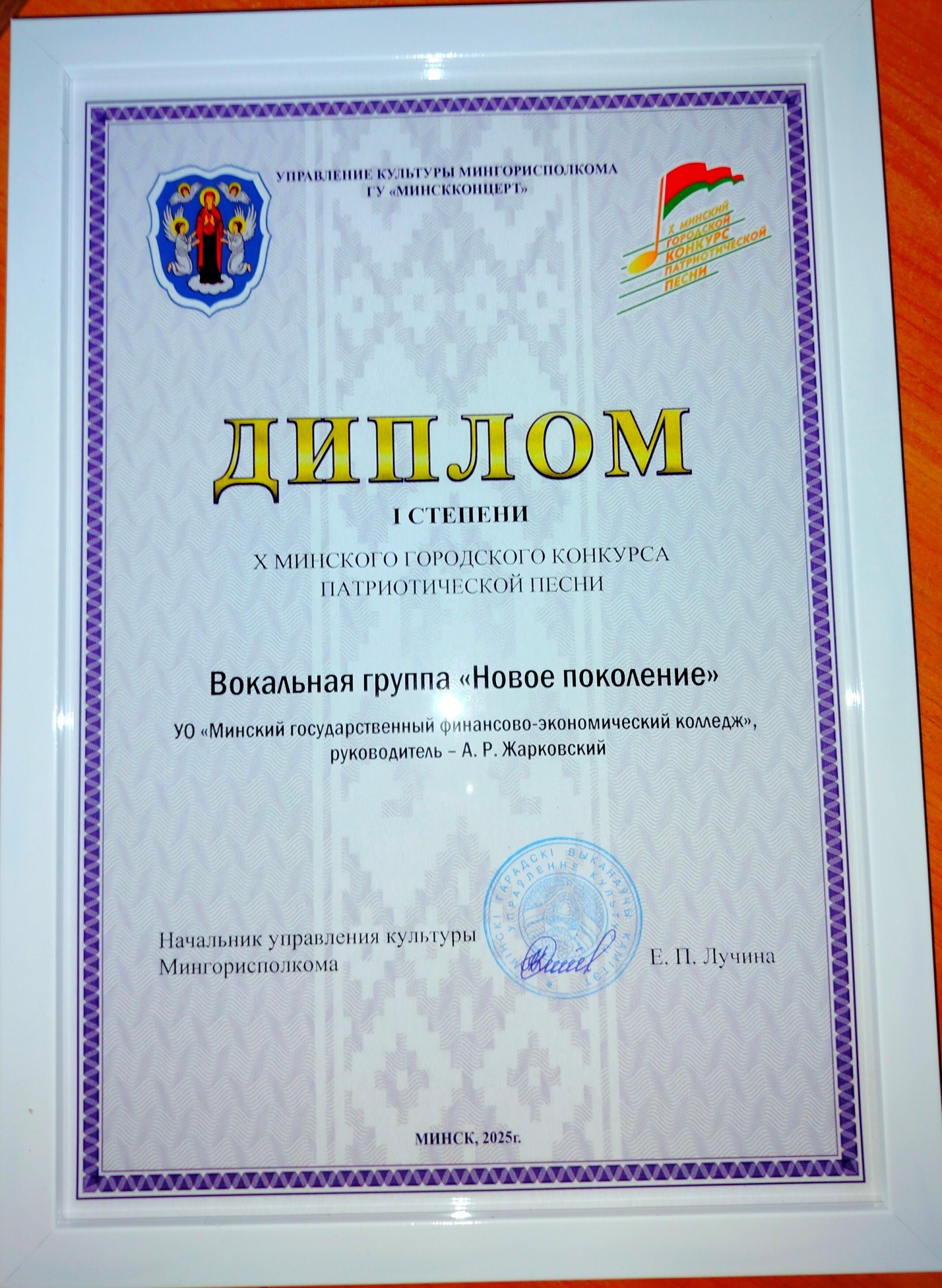 9 мая 2025 года на сцене в «Верхнем городе» состоялся гала-концерт и церемония награждения победителей X Минского городского конкурса патриотической песни, посвященного 80-летию в Великой Отечественно войне. Дипломом I степени были награждены учащиеся колледжа вокальной группы «Новое поколение»: Бадытчик Мария, учебная группа 2301, Бочко Анастасия, учебная группа 2301, Мойсевич Милана, учебная группа 2212 и Генюш Варвара, учебная группа 2209.