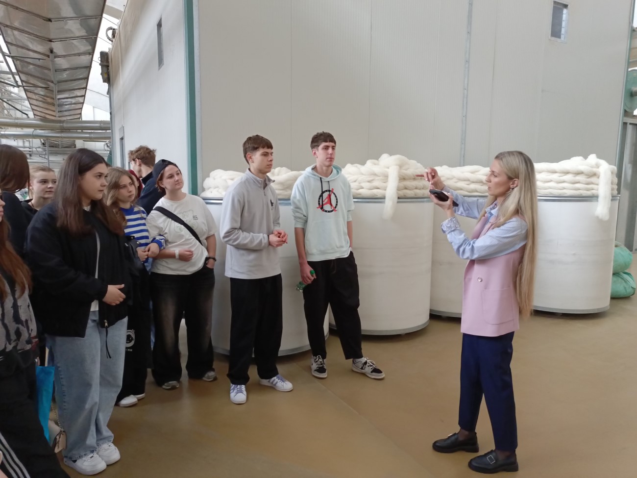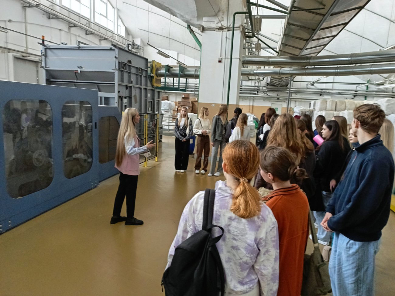 Учащиеся узнали историю фабрики, познакомились с технологическим процессом производства пряжи трикотажной и ткацкой, широкого ассортимента современных плательно-костюмных и брючных чистошерстяных, шерстяных, полушерстяных тканей. Ребята увлеченно слушали экскурсовода, который рассказывал и показывал, как овечья шерсть превращается в готовую ткань.