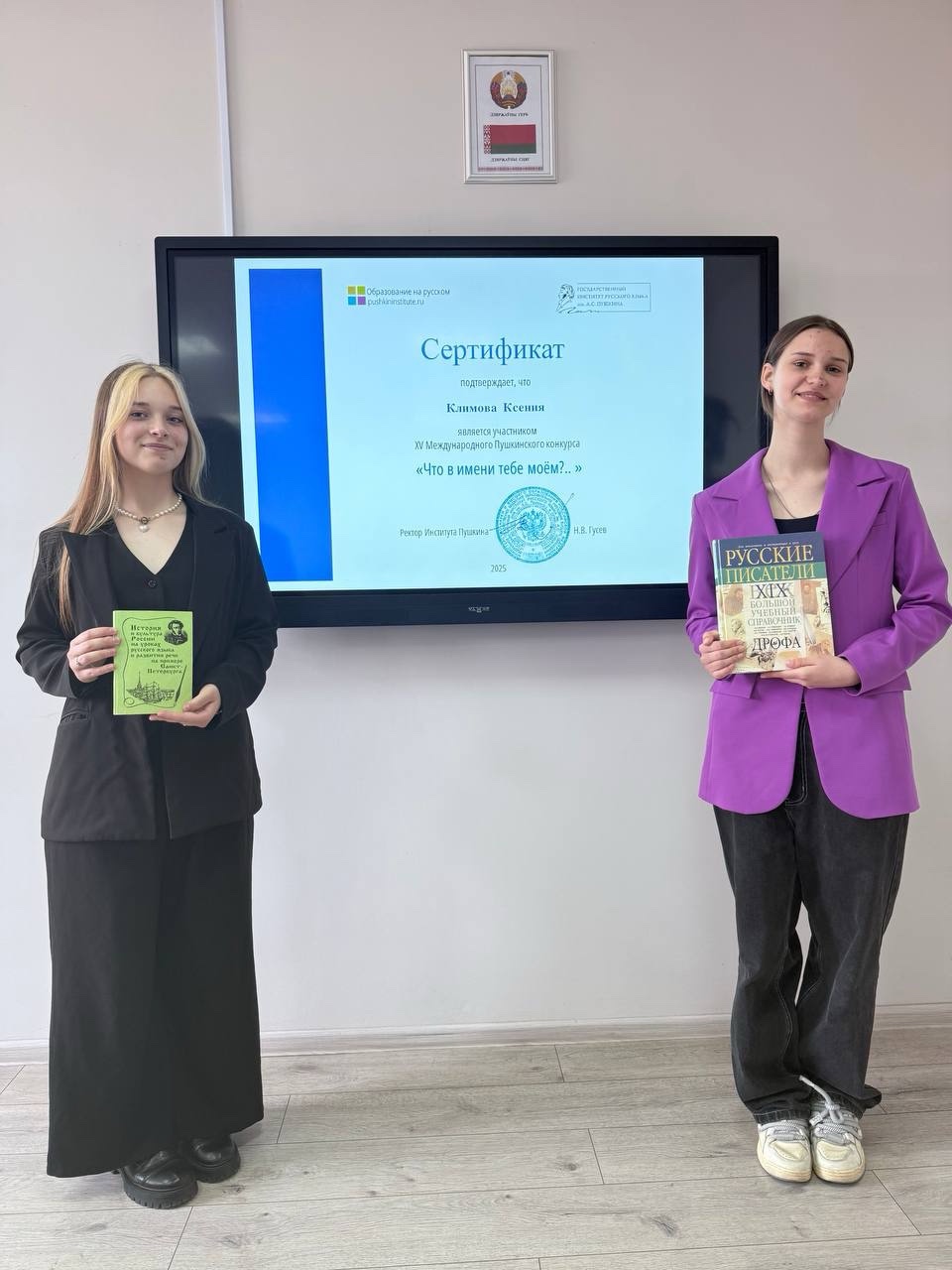 В мае 2025 года учащиеся группы 2403 приняли участие в XV Международном Пушкинском конкурсе «Что в имени тебе моём?», который проводился федеральным государственным бюджетным образовательным учреждением высшего образования «Государственный институт русского языка им. А.С. Пушкина» города Москвы.