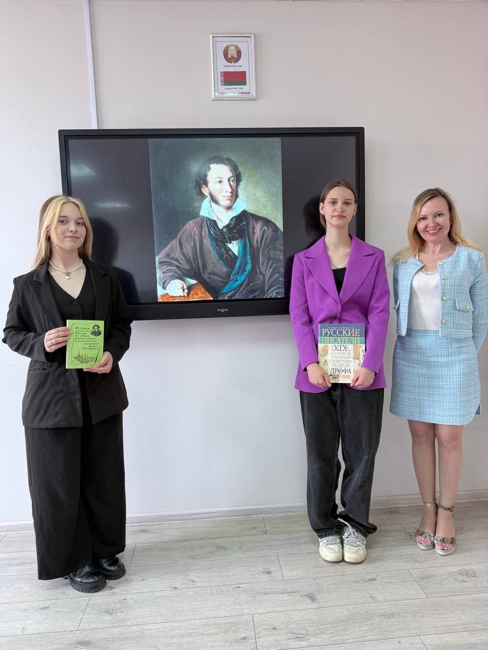 Учащаяся Климова Ксения приняла участие в номинации «Читаем Пушкина» (конкурс чтецов), учащаяся Капанец Дарья создала буктрейлер по роману «Евгений Онегин» для участия в номинации «Читайте А.С. Пушкина!» (конкурс буктрейлеров). Обе учащиеся получили сертификаты участников.