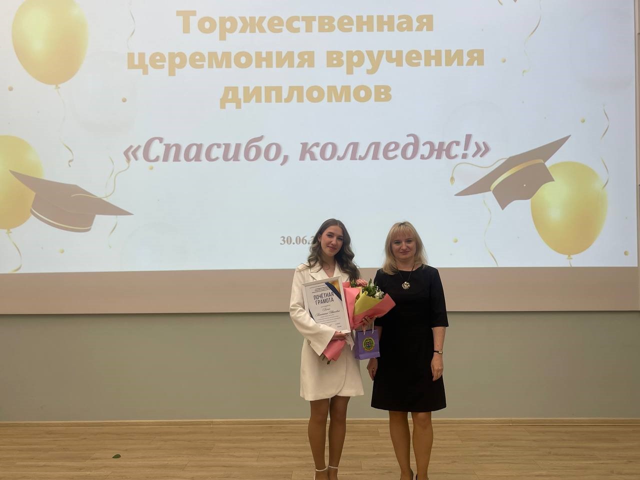В рамках торжественной церемонии вручения дипломов директор колледжа Оксана Анатольевна Бесько отметила особые достижения наших учащихся. Грамоты колледжа за творческие успехи были вручены: