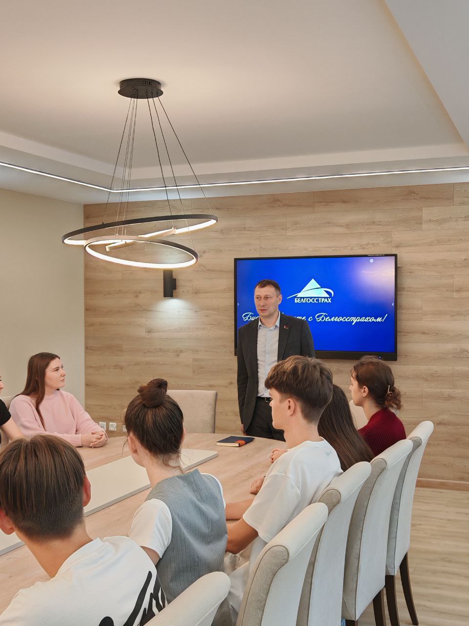 10 сентября 2025 года в рамках целевой подготовки для БРУСП «Белгосстрах» в колледже прошла встреча учащихся 1-го и 2-го курсов специальности «Финансовая деятельность» с заместителем начальника управления персоналом БРУСП «Белгосстрах» Белевичем С. Е.