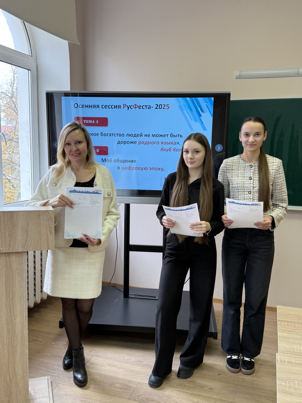 16 октября 2025 года учащиеся колледжа приняли участие в осенней сессии Международной образовательно-патриотической акции «Фестиваль сочинений РусФест», которую проводит АНО ДО «УИЦ «СОКРАТ» г. Вологды. В рамках акции учащиеся писали творческие работы на одну из предложенных тем: «Никакое богатство людей не может быть дороже родного языка» и «Моё общение в цифровую эпоху». Победители и призёры осенней сессии РусФеста будут объявлены 26 февраля 2026 года.