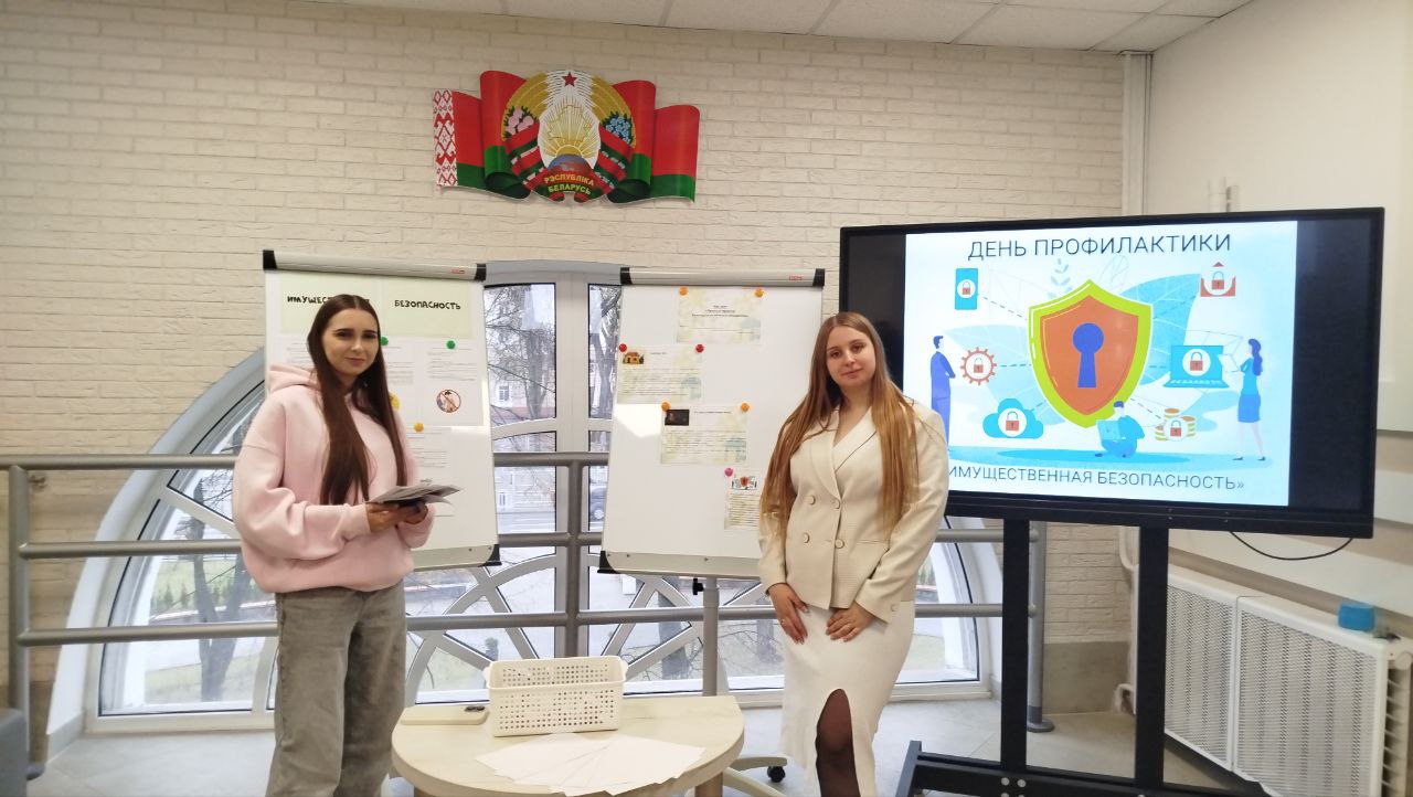 11 ноября 2025 года в колледже проведен День профилактики «Имущественная безопасность»: оформлен информационный стенд, на перерывах демонстрировались видеоролики по данной тематике, проведена интерактивная площадка «Лаборатория имущественной безопасности», в рамках которой участники должны были соотнести картинку нарушения права со статьей закона. С группами 1-2 курсов проведен фоточеллендж «Простые правила имущественной безопасности». Все участники мероприятия получили сладкие призы.