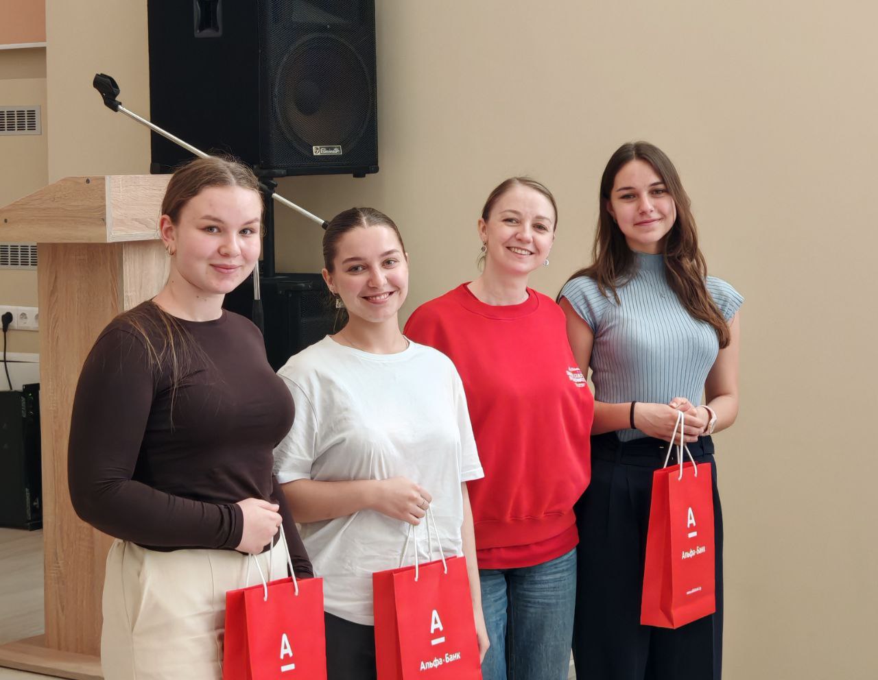 17 июня 2025 года в рамках профориентации в колледже прошла встреча учащихся 2-го курса специальностей «Банковская деятельность», «Маркетинговая деятельность» с руководителями структурных подразделений и специалистами ЗАО «Альфа-Банк» - Куклицкой Т., директором Департамента обслуживания и развития массового бизнеса, Сиязовой В., начальником отдела подбора и адаптации персонала, Якутовичем С., руководителем управления по развитию продуктов массового бизнеса, Солонко А., начальником управления прямых продаж, Захматовой Т., руководителем проекта по развитию бренда работодателя, Кулиевым А. руководителем по массовому бизнесу.