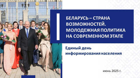 17 июня 2025 года проведен единый день информирования на тему «Беларусь – страна возможностей. Молодежная политика на современном этапе» в структурных подразделениях и в учебных группах. В ходе информирования особое внимание обращено на существующие ценности молодежи и созданные условия для молодежи.