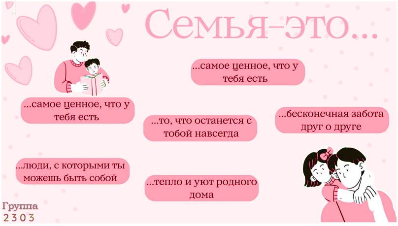 15 мая 2025 года учащимися учебной группы 2303 Панфиленко Елизаветой и Слиборской Марией подготовлен плакат ко Дню семьи.