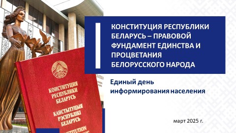 20 марта 2025 года в структурных подразделениях и в учебных группах прошел единый день информирования «Конституция Республики Беларусь – правовой фундамент единства и процветания белорусского народа», в ходе которого рассмотрели вопросы истории подготовки и принятия Конституции Республики Беларусь 1994 года, референдумы в Беларуси: вехи конституционного развития.