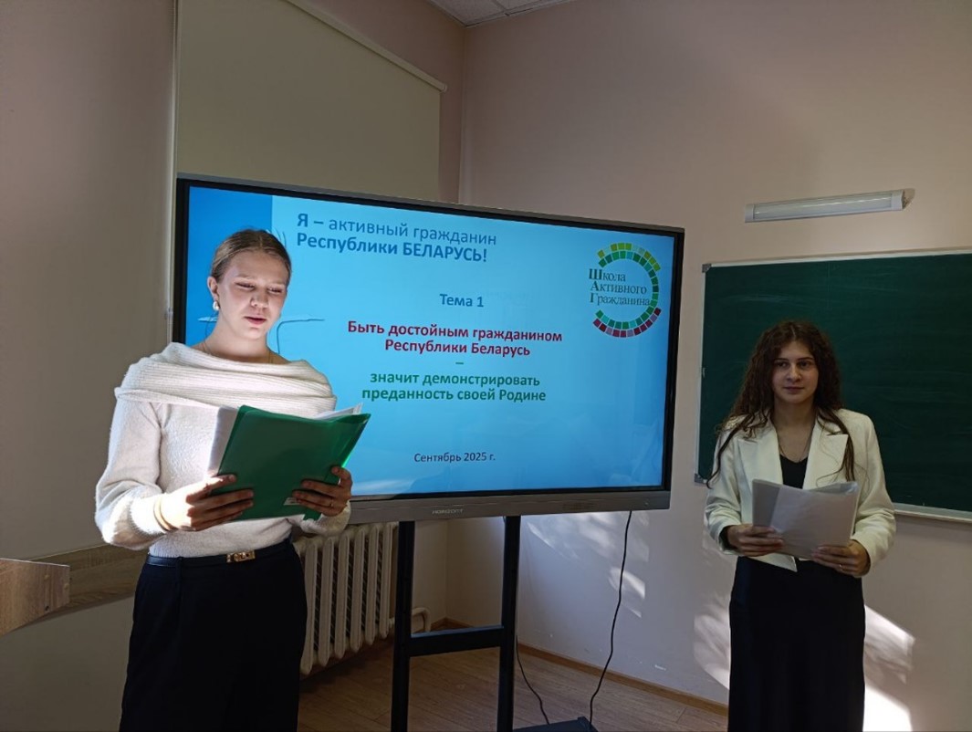 25 сентября 2025 года в рамках реализации информационно-образовательного проекта «ШАГ» для учащихся нового набора состоялось занятие по теме: «Быть достойным гражданином – значит быть активным гражданином республики Беларусь!».
