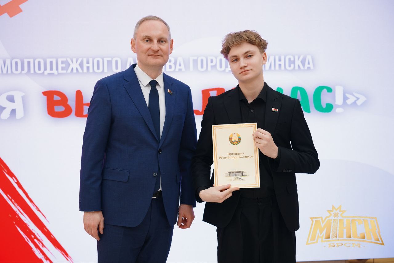 12 марта 2025 года в Ратуше состоялось награждение молодежного актива г.Минска, принимавших участие в избирательной кампании Президента Республики Беларусь. От колледжа отмечен благодарностью Президента Республики Беларусь А.Г. Лукашенко Береза Никита, учащийся учебной группы 2310.