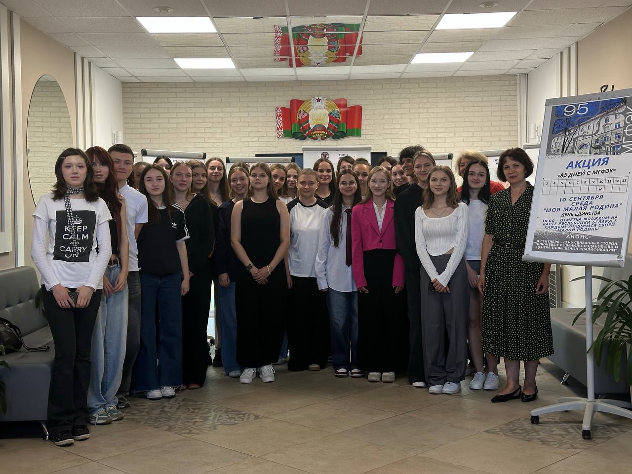 10 сентября 2025 года в рамках акции «9,5 дней с МГФЭК» в колледже прошел один из самых душевных и наглядных флешмобов – «Моя малая Родина». Его итогом стала большая карта Республики Беларусь, которая буквально «расцвела» десятками флажков, символизирующих малую родину учащихся и работников колледжа.