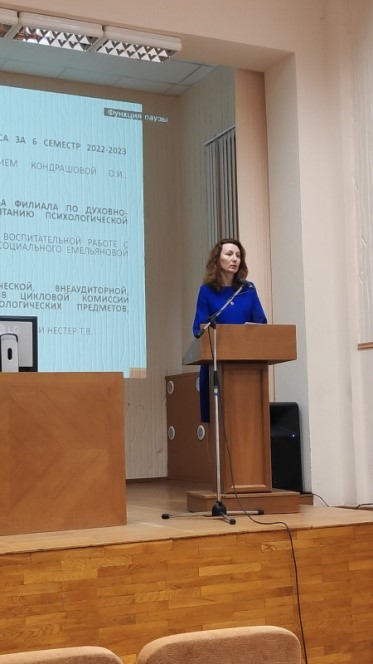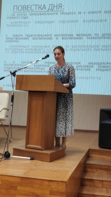 Об итогах образовательного процесса за 6 семестр 2022-2023 учебного года информировали заведующие отделением Кондрашова Ольга Иосифовна и Пархимчик Ольга Николаевна.
