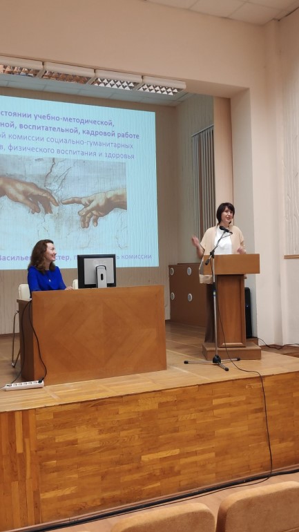 Председатель цикловой комиссии социально-гуманитарных предметов, физического воспитания и здоровья Нестер Татьяна Васильевна доложила о состоянии учебно-методической, внеаудиторной, воспитательной, кадровой работы в цикловой комиссии социально-гуманитарных предметов, физического воспитания и здоровья.