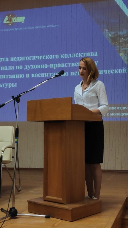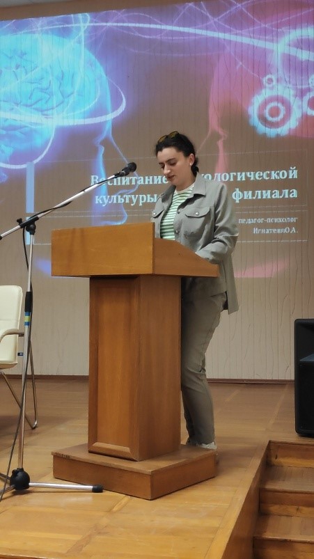О работе педагогического коллектива филиала по духовно-нравственному воспитанию и воспитанию психологической культуры выступили педагог социальный Емельянова Татьяна Николаевна, педагог-психолог Игнатеня Оксана Анатольевна.