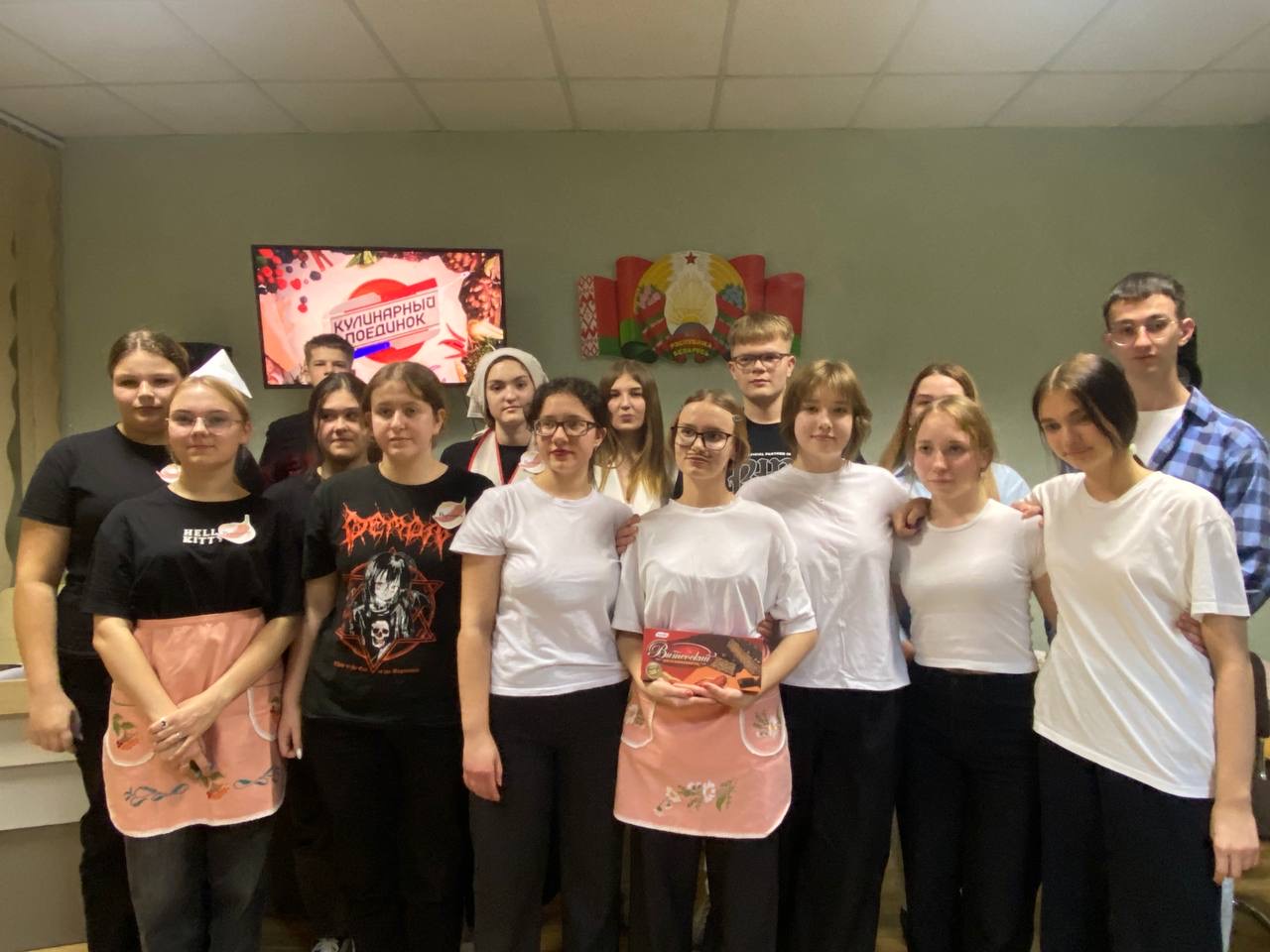 Две команды «Перчинки» и «Наполеон» соревновались в знаниях кулинарных терминов, в распознавании продуктов по вкусу (с закрытыми глазами), в отгадывании кулинарных головоломок. Основным заданием было приготовление полезного для здоровья салата. Компетентное жюри в составе заместителя директора по воспитательной работе Устинович Натальи Михайловны, членов совета общежития Полянской Надежды и Новика Ильи оценивало работу участников по следующим критериям: оригинальность, вкусовые качества и оформление. Впечатлили жюри и зрителей в зале снятые командами видеоролики. Болельщики команд также поучаствовали в конкурсе «Угадай-ка». С незначительным преимуществом в баллах победила команда «Наполеон».