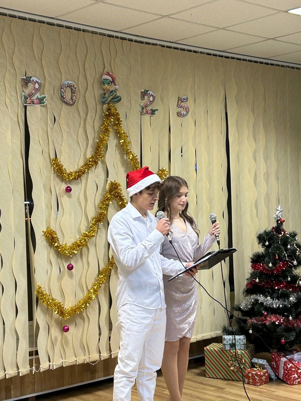 Музыкальные и танцевальные номера исполнили Миньковская Арина, Бочко Анастасия, Андропова Каролина, а также участники танцевальной группы «Step by step». В образе Деда Мороза и Снегурочки выступили Сухинин Ренат и Циунель Елизавета.