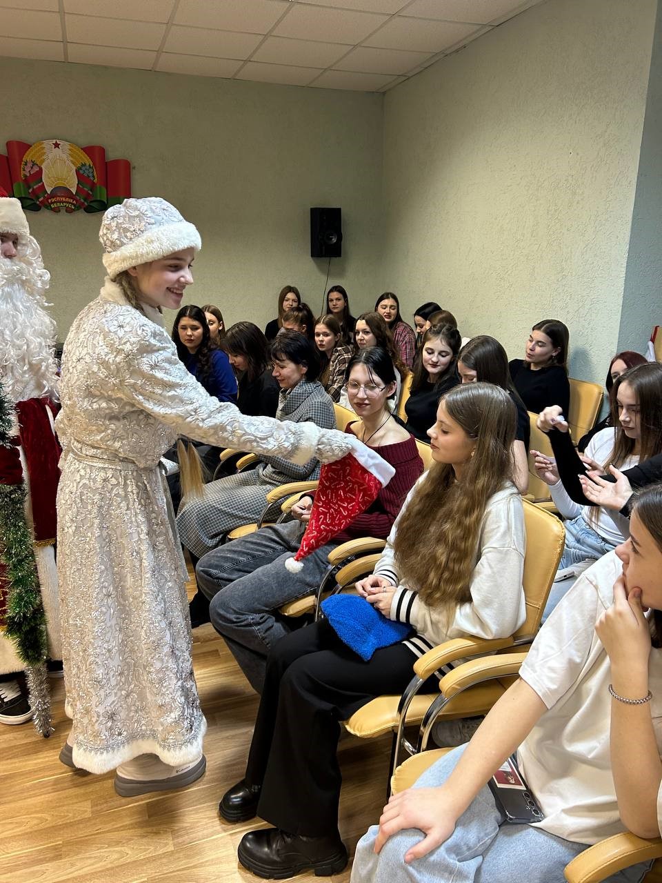 Ребята поздравили всех с наступающим Новым годом, пожелали здоровья, успехов, мира и добра! Сладкие подарки всем участникам были предоставлены профсоюзом учащихся учреждения образования «МГФЭК».