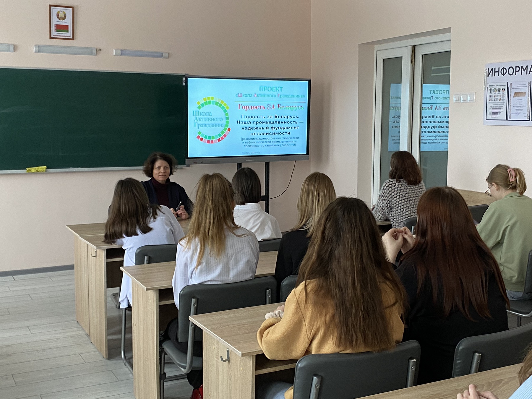 23 ноября 2023 года в рамках информационно-образовательного проекта «Школа Активного Гражданина» в колледже прошло мероприятие по теме: «Родина моя Беларусь в лицах. В этой красе величавой есть доля труда моего» (о тружениках промышленности).
