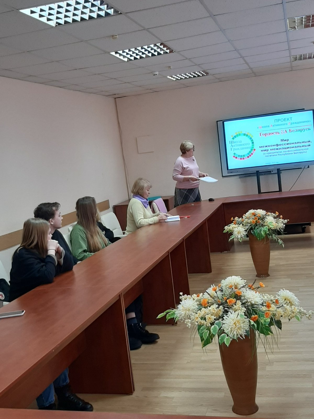 31 января  2022 года учащиеся филиала приступили к учебным занятиям после зимних каникул.  В этот день проведен информационный час в рамках информационно-образовательного проекта «Школа Активного Гражданина». Тема: «Гордость за Беларусь. Мир межконфессиональный, мир межнациональный» (о приоритетах конфессиональной политики Республики Беларусь)».