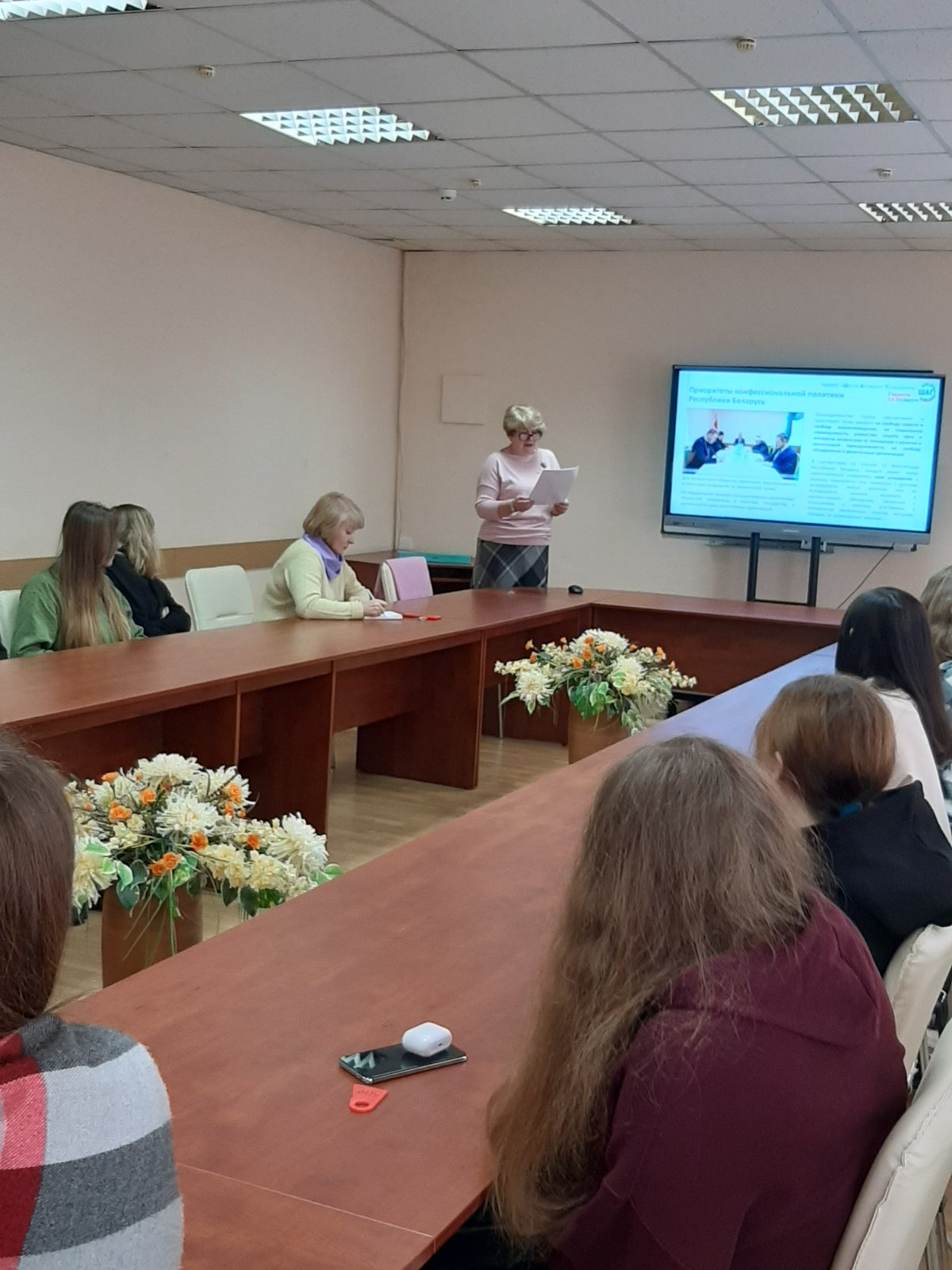 В ходе информационного часа обратили внимание на содержание нормативных актов по рассматриваемому вопросу: Конституцию Республики Беларусь,  Закон Республики Беларусь «О свободе совести и религиозных организациях», Закона Республики Беларусь «О свободе совести и религиозных организациях».