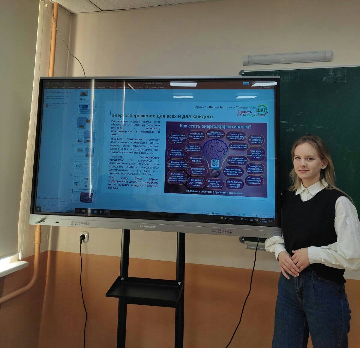 23 феврала 2023 года в учебных группах 1 и 2 курсов прошло мероприятие информационно-образовательного проекта «ШАГ» на тему «Гордость за Беларусь. Энергия для созидания, энергия для будущего» (обеспечение энергобезопасности страны).