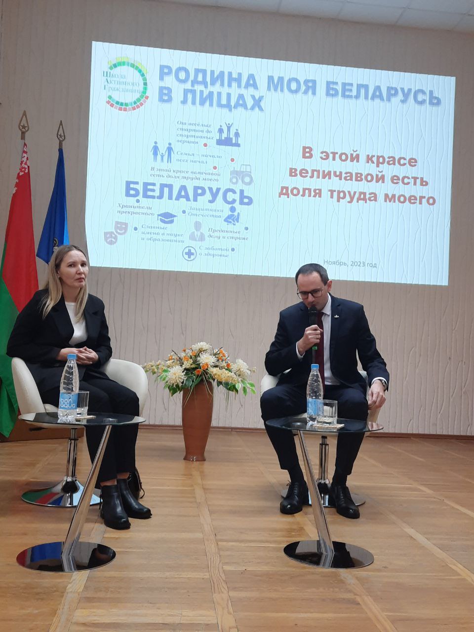 23 ноября 2023 года в рамках информационно-образовательного проекта «Школа Активного Гражданина» в колледже прошло мероприятие по теме: «Родина моя Беларусь в лицах. В этой красе величавой есть доля труда моего» (о тружениках промышленности).