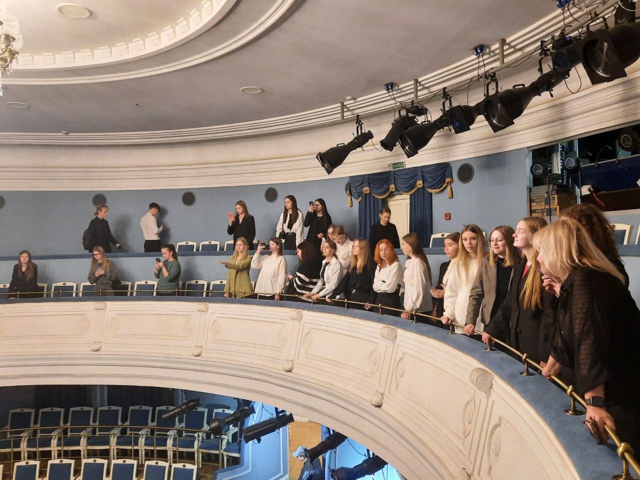 21 декабря 2023 года учащиеся колледжа в рамках информационно-образовательного проекта «Школа Активного Гражданина» посетили Национальный академический театр им. Я. Купалы, где в сопровождении главного администратора театра Демеш Татьяны Леонидовны узнали об истории театра, познакомились с его закулисьем, побывали в камерном зале, костюмерной, ознакомились с реквизитом, декорациями для спектаклей.