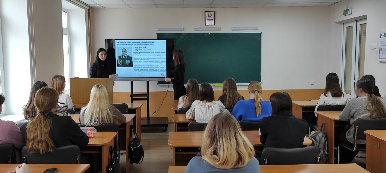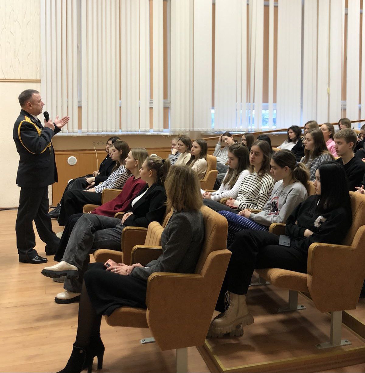 В актовом зале колледжа учащиеся первого курса встретились с руководителем по военно-патриотическому воспитанию колледжа, полковником милиции в запасе, воином-интернационалистом, участником боевых действий в Афганистане - Булгаком Владимиром Томашевичем.