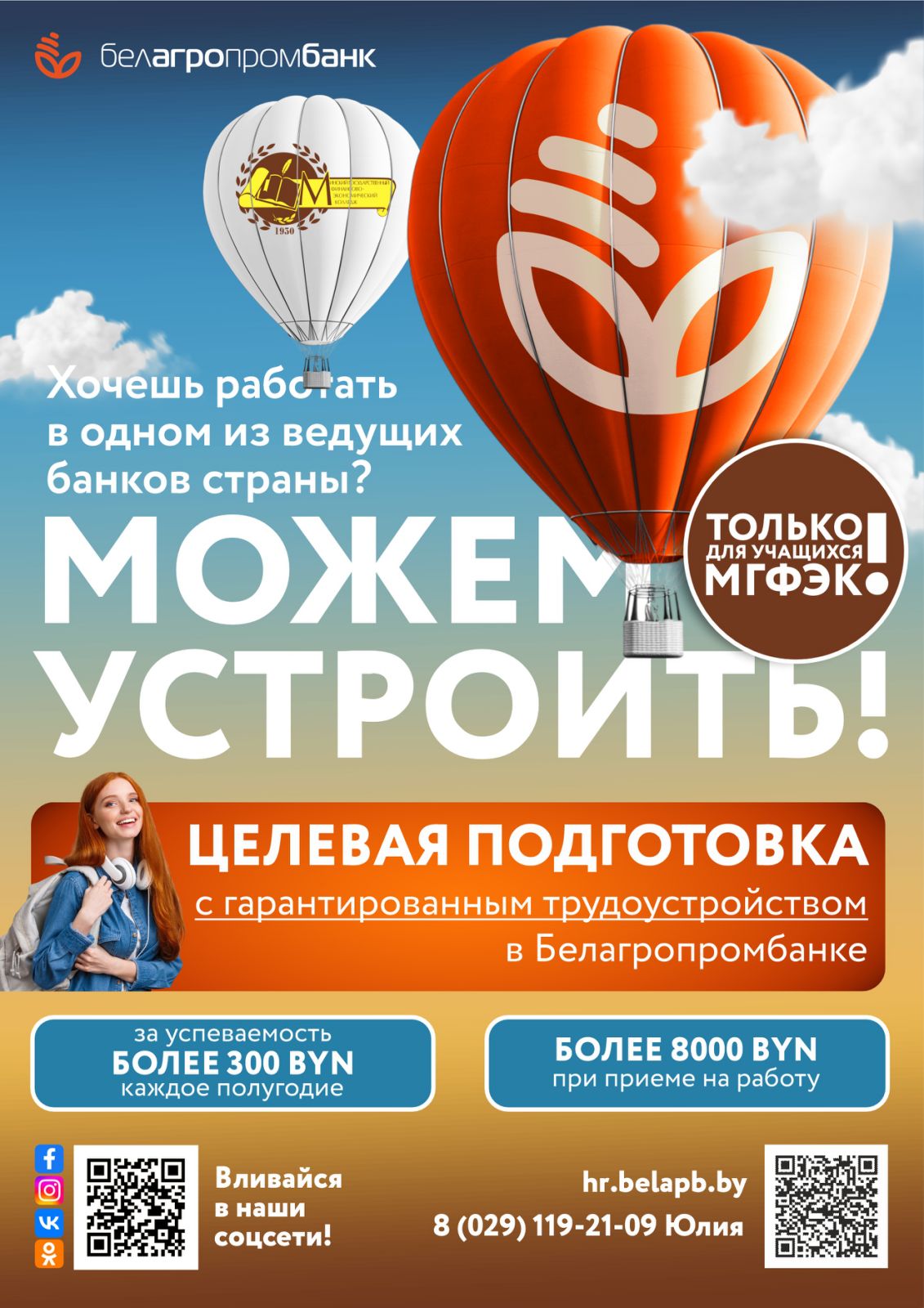 Количество мест для получения среднего специального образования в 2025 году на условиях целевой подготовки по специальности 5-04-0411-03 «Банковская деятельность» (квалификация – специалист по банковским услугам) для ОАО «Белагропромбанк» на основе общего среднего образования (после 11 классов)25.