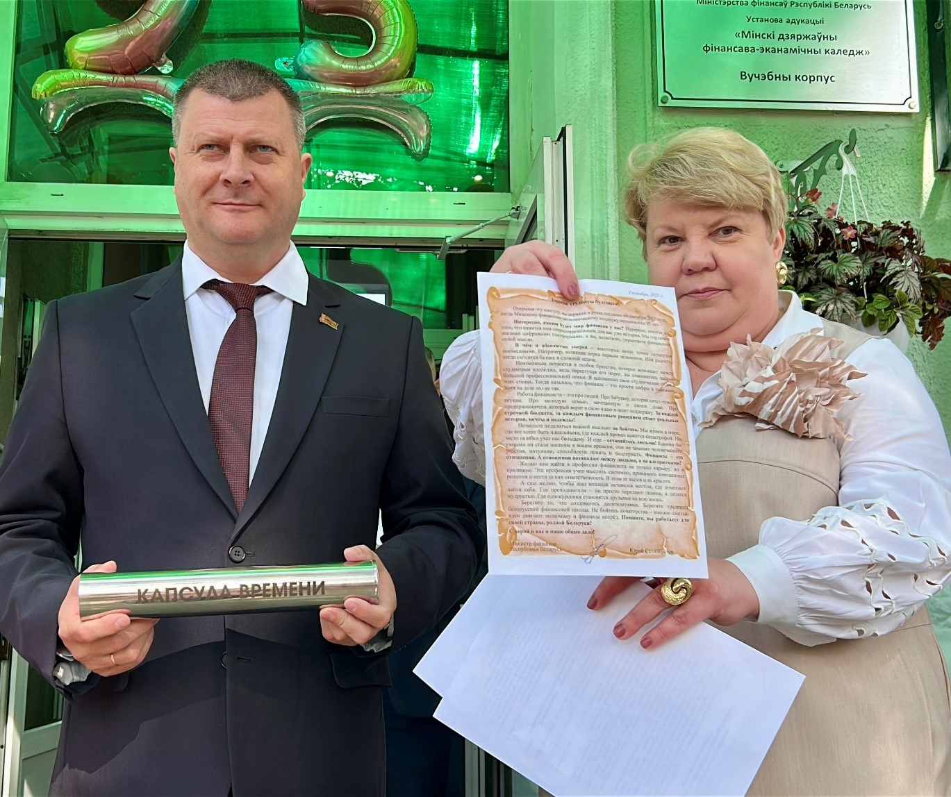 Одним из самых волнительных моментов праздника стало создание «Капсулы времени». В неё были помещены послания от нынешних учащихся и преподавателей для будущих поколений. Особую значимость капсуле придаёт то, что к этим напутствиям присоединился Министр финансов Республики Беларусь и передал будущим учащимся своё официальное обращение. Теперь капсула будет бережно храниться в Музее колледжа до знаменательного дня — 100-летнего юбилея, чтобы быть вскрытой ровно через 5 лет.