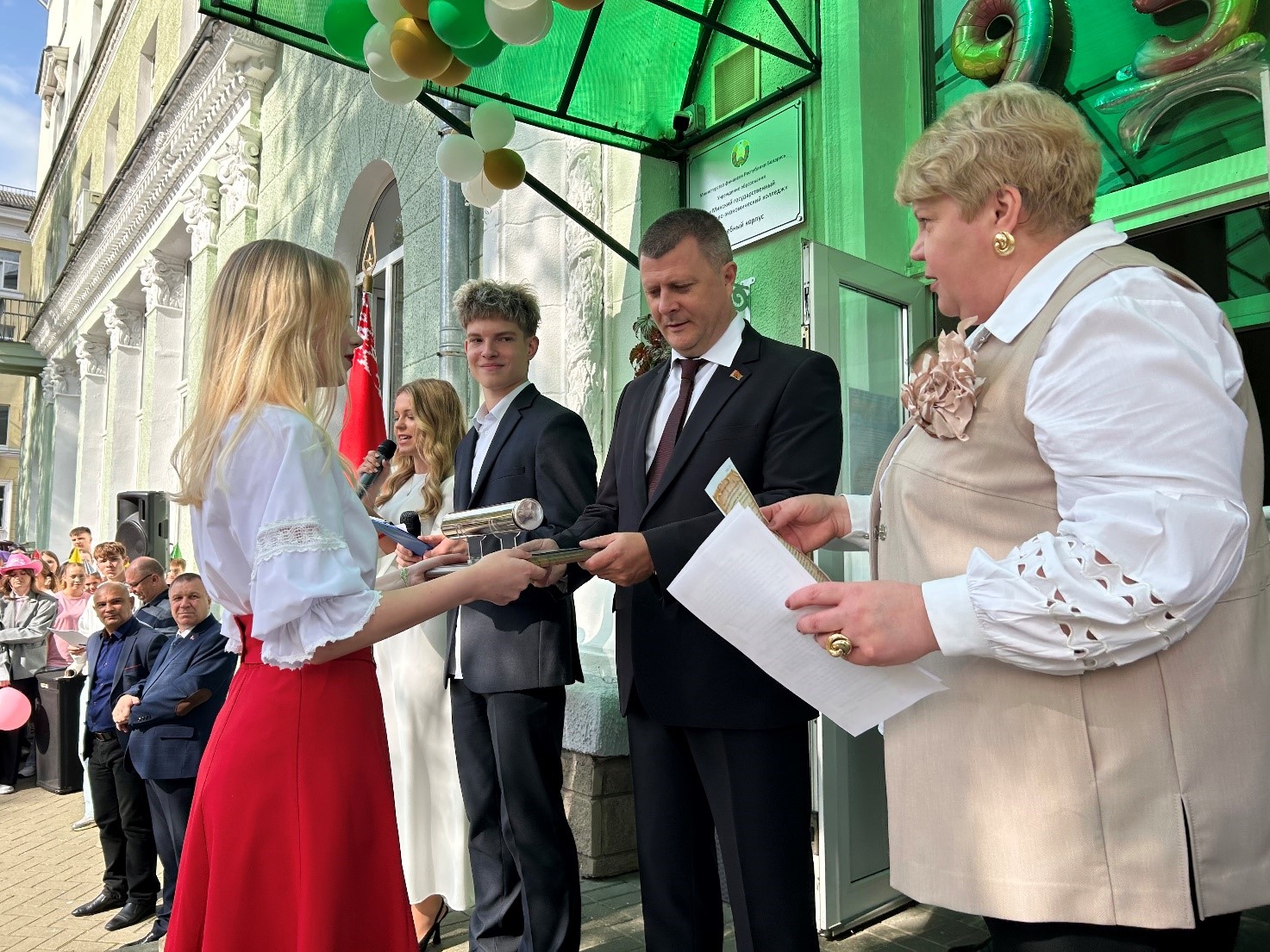 Торжество началось с внесения Государственного флага Республики Беларусь и исполнения Государственного гимна.