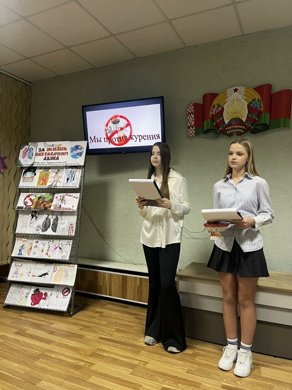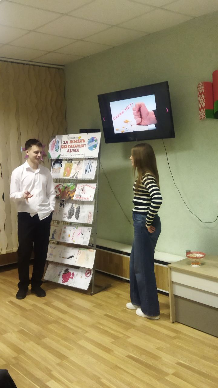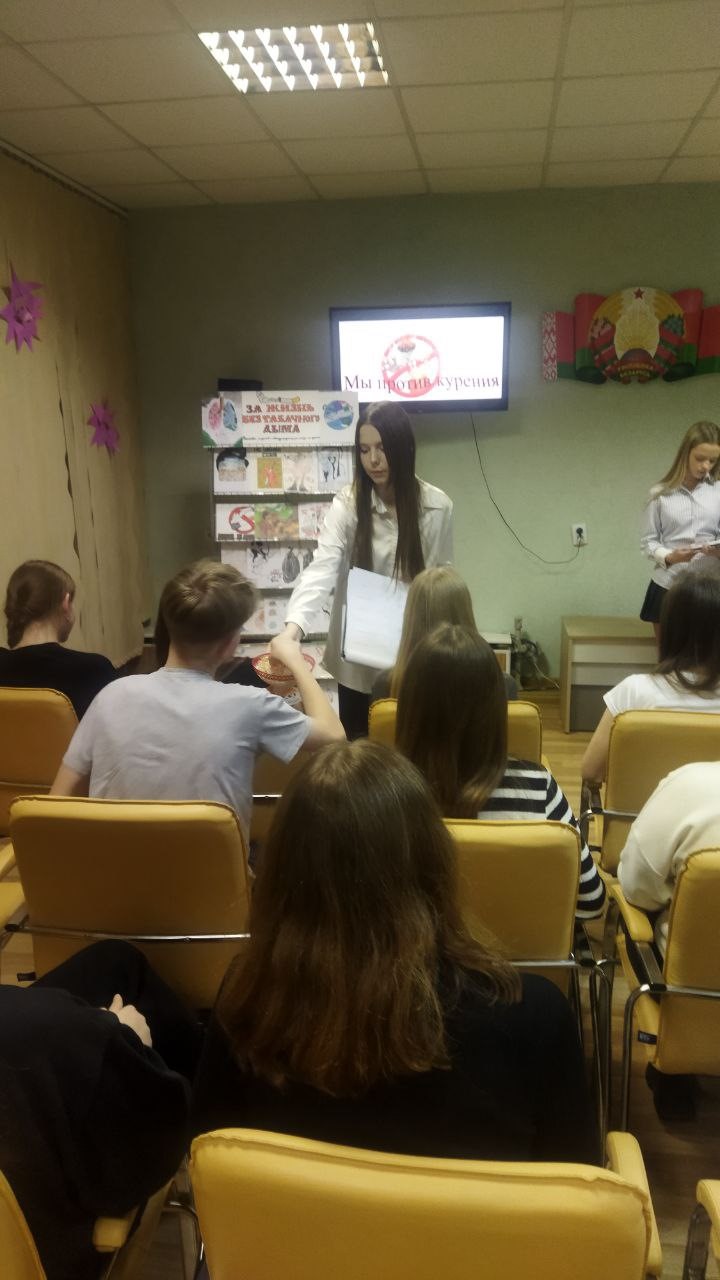 Ведущие викторины Деркач Полина и Парфенок Ульяна рассказали присутствующим историю возникновения Международного дня отказа от курения, проинформировали о вреде курения и вейпов, а также о формировании здорового образа жизни. Далее была проведена викторина, в ходе которой участники активно отвечали на вопросы, приводя веские аргументы о вреде табака и влиянии курения на здоровье человека, побуждая аудиторию задуматься о собственном выборе. Для ребят была подготовлена презентация на тему табакокурения и видеоролик «Что будет с легкими человека, если выкурить 300 сигарет».